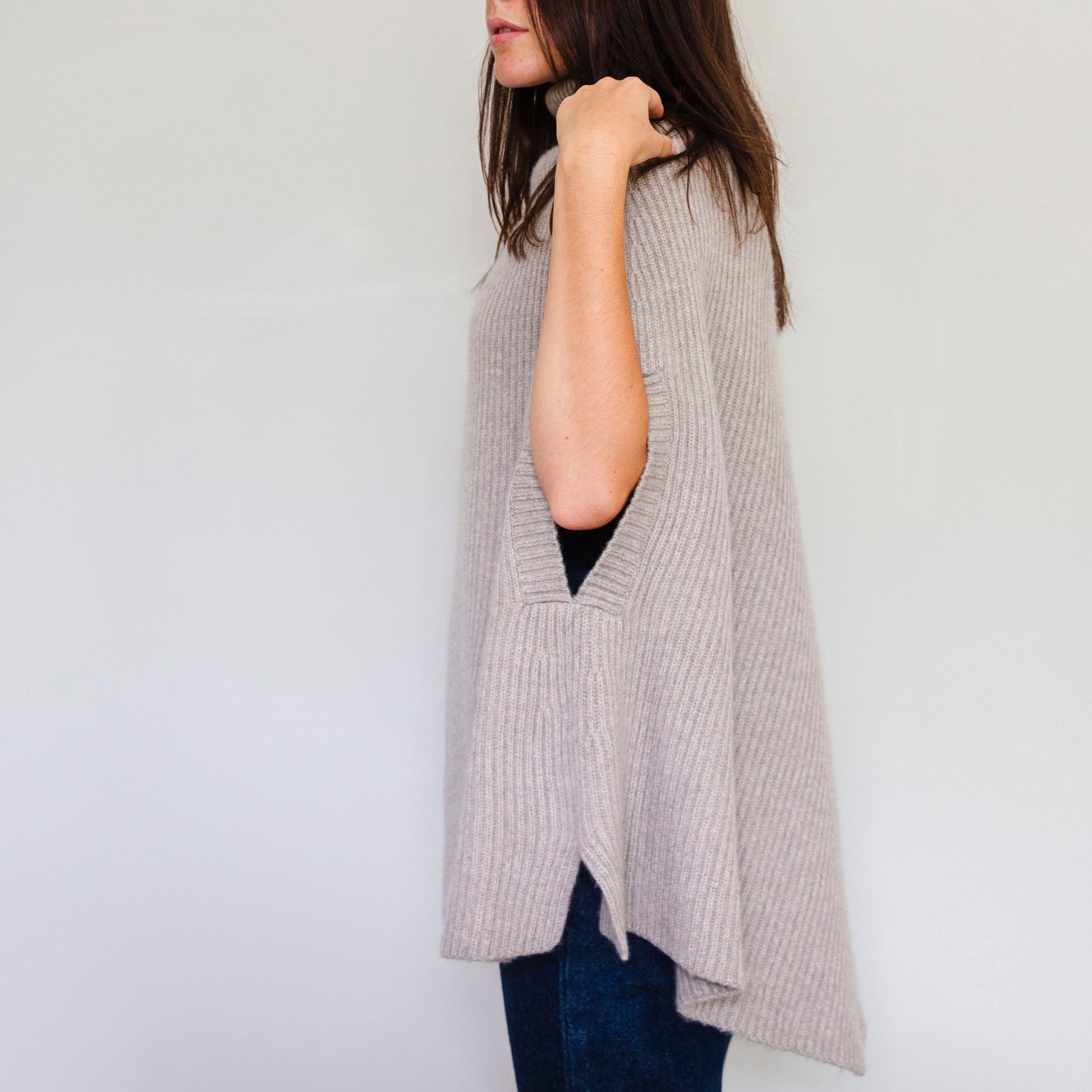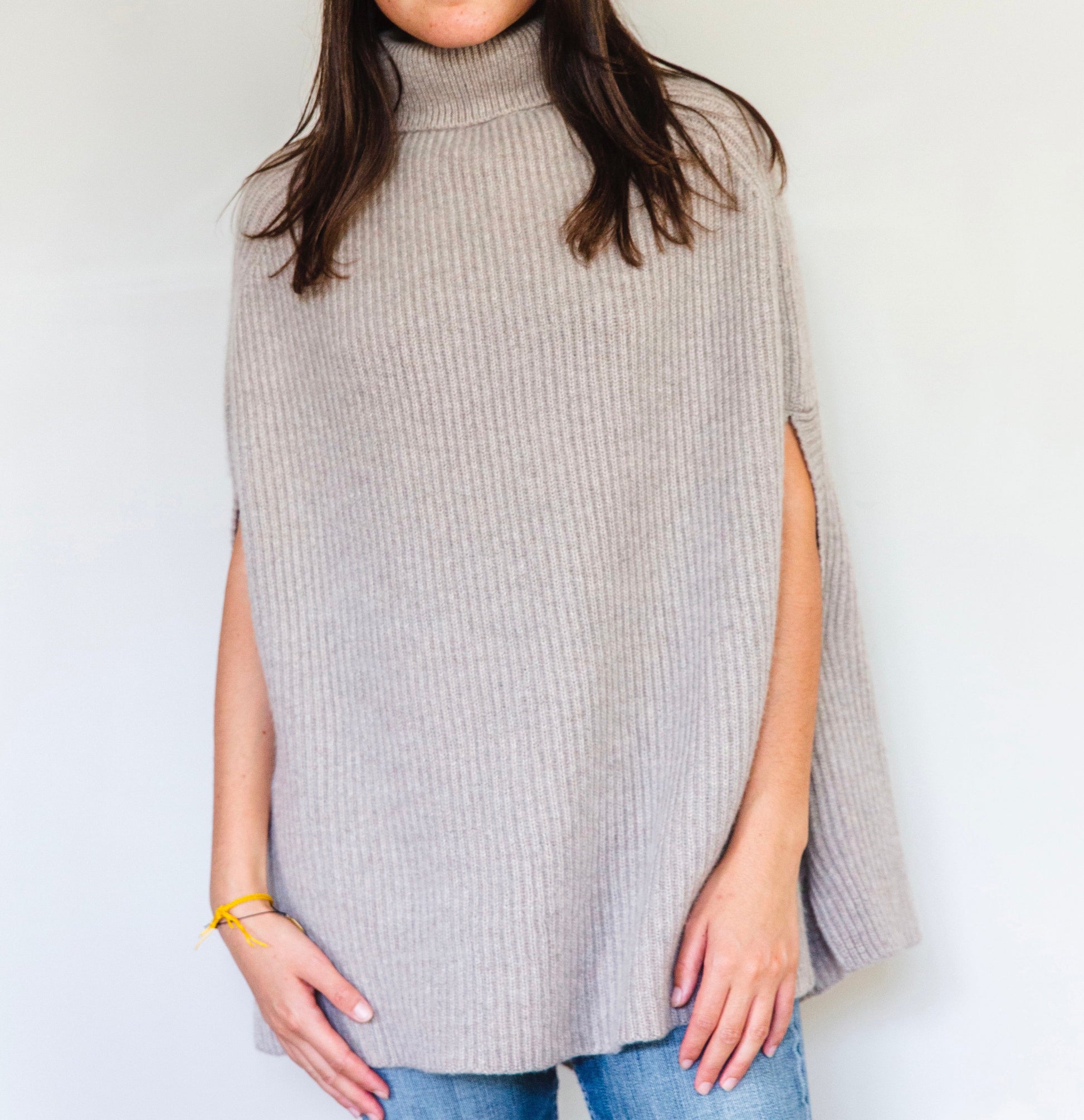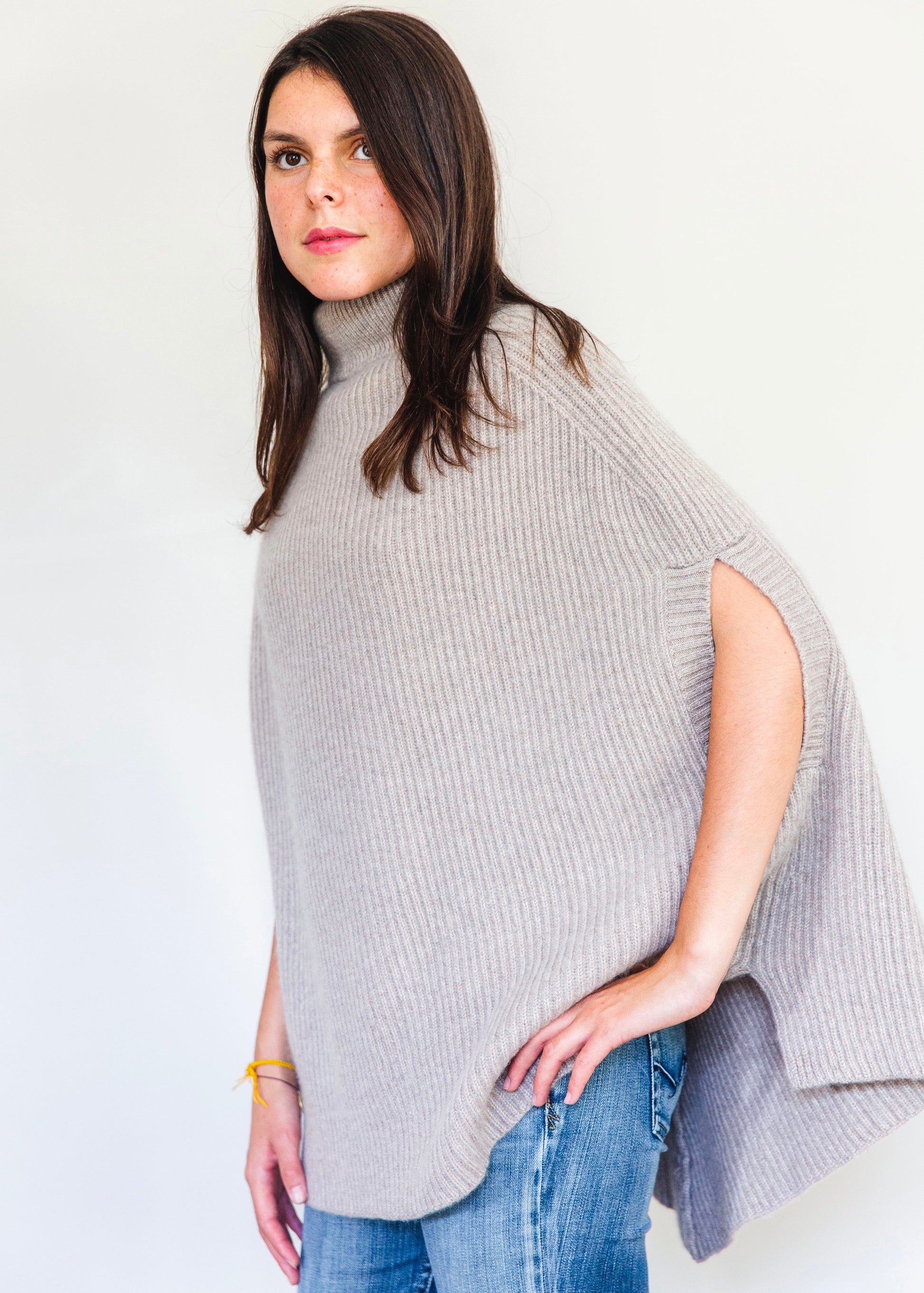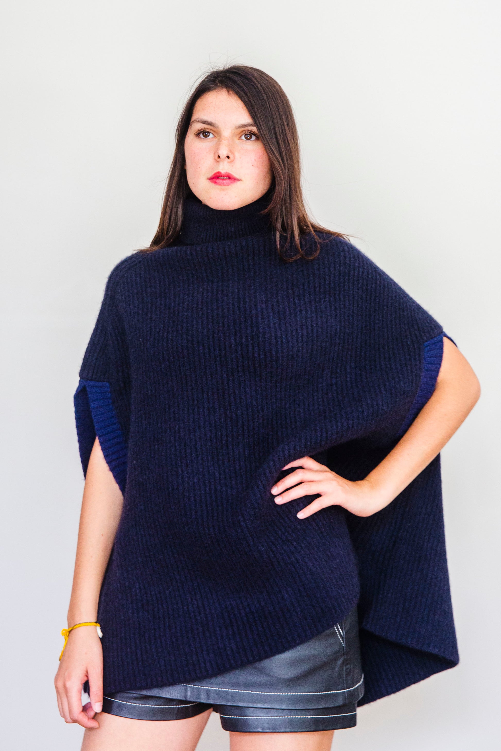 Poncho élégant col roulé, avec ouvertures pour les bras.