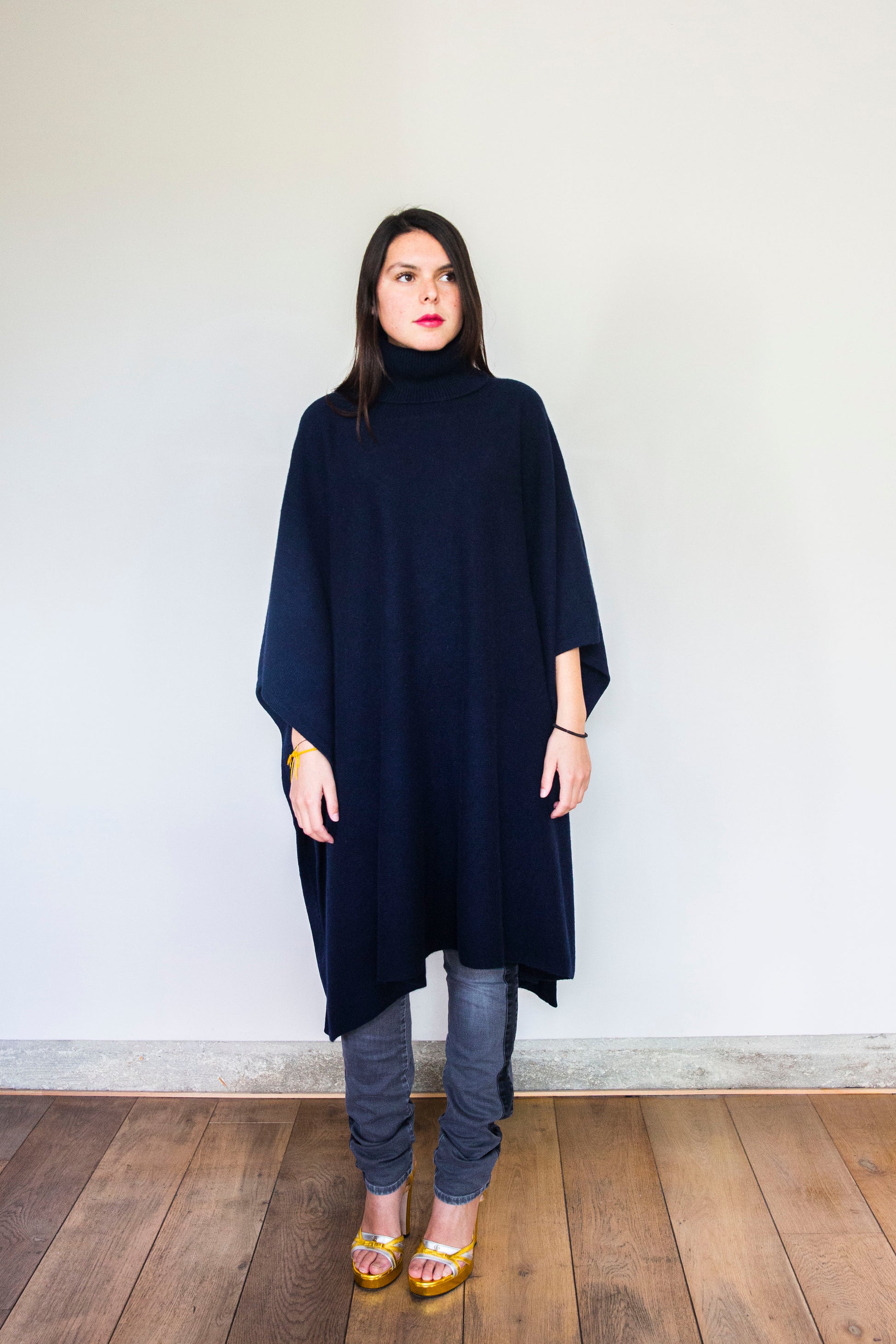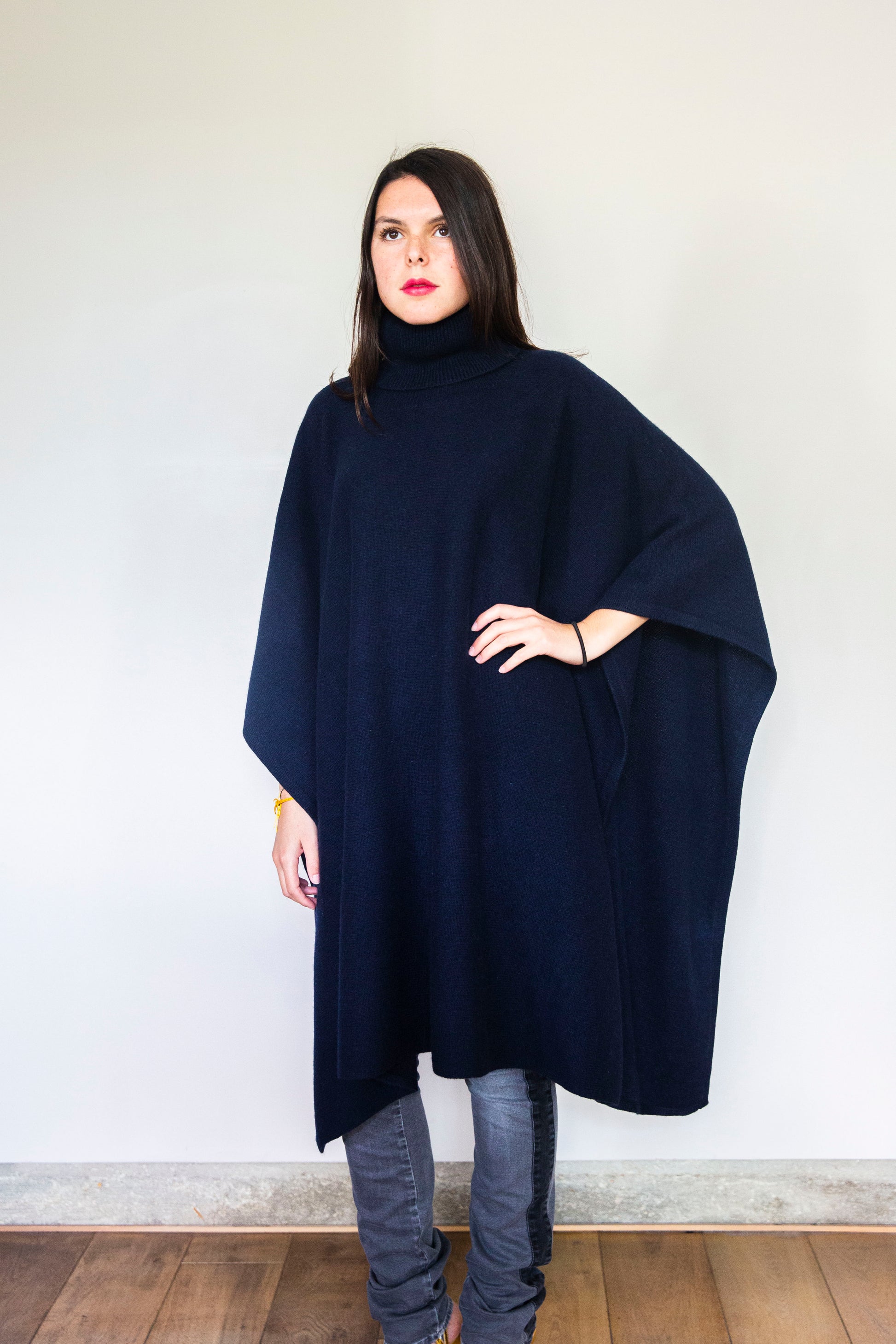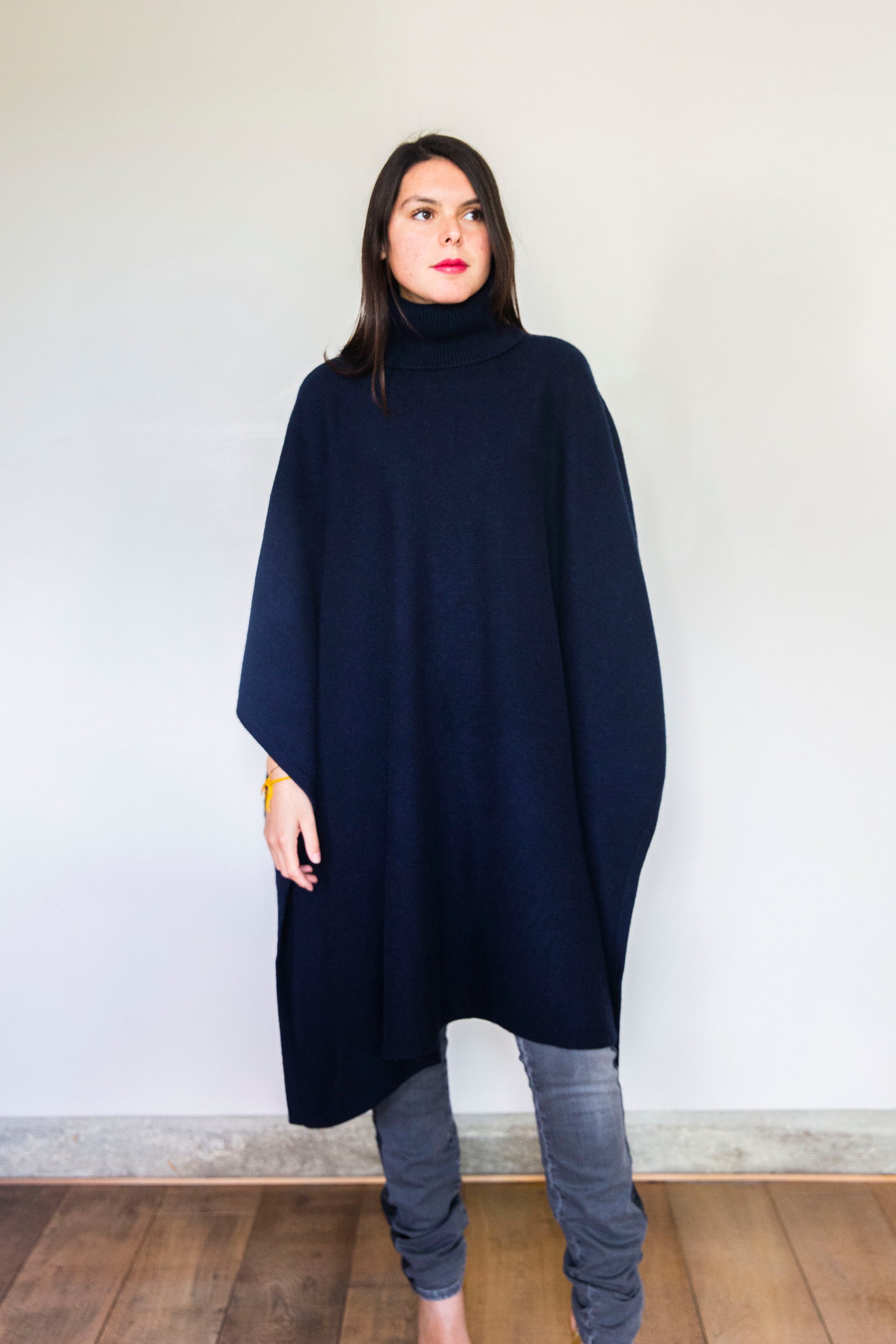 Poncho Julie Long Bleu marine