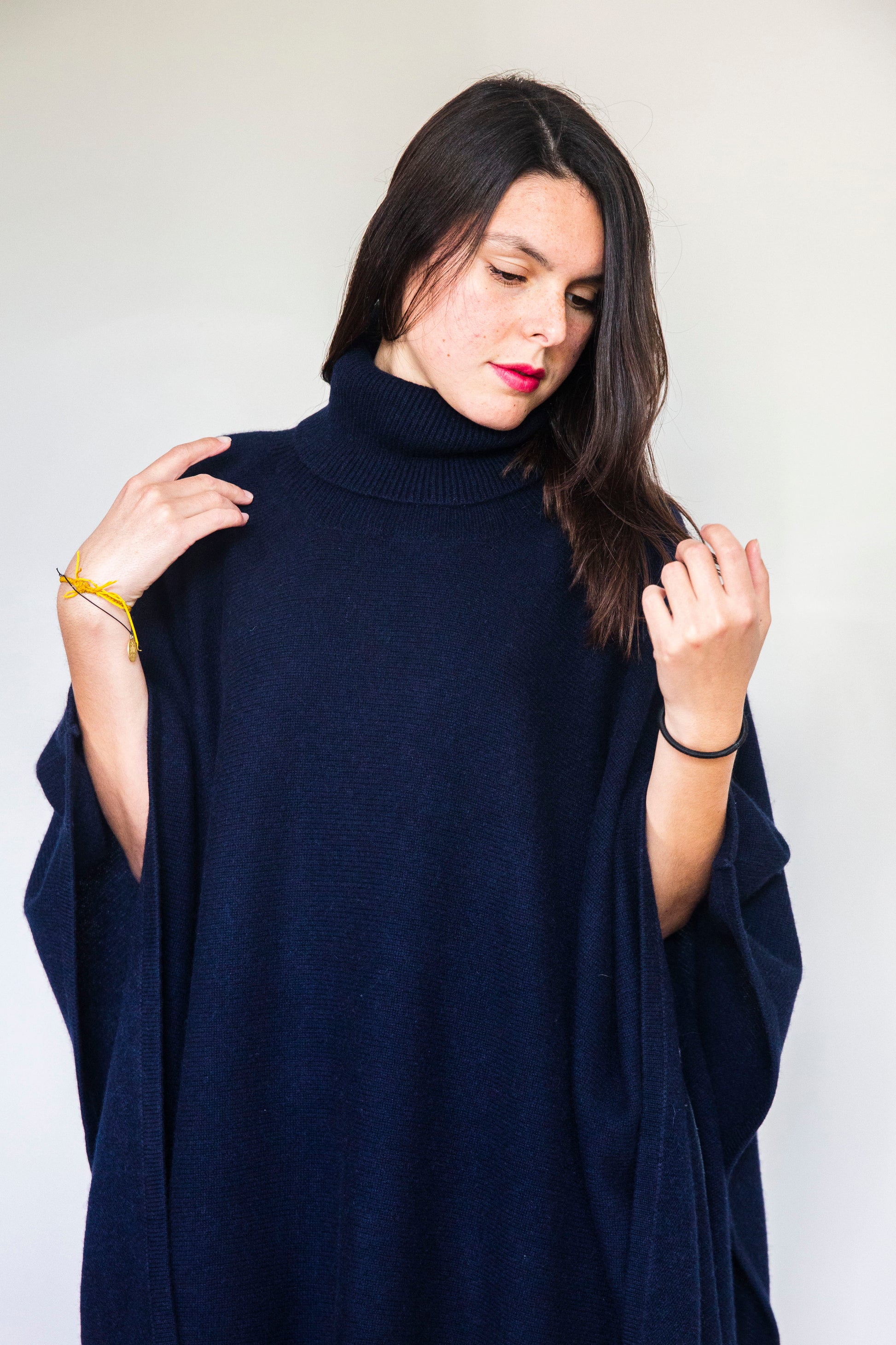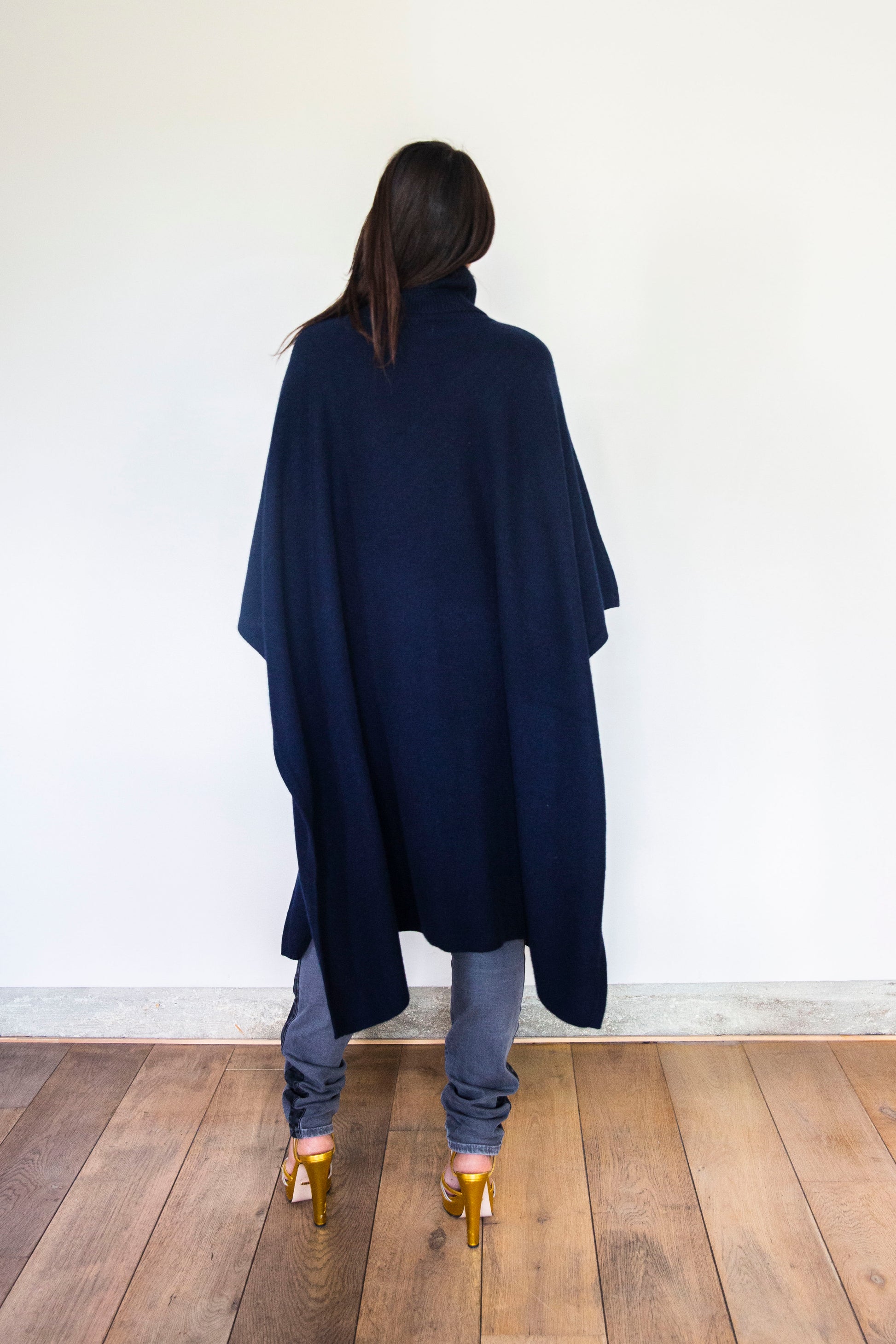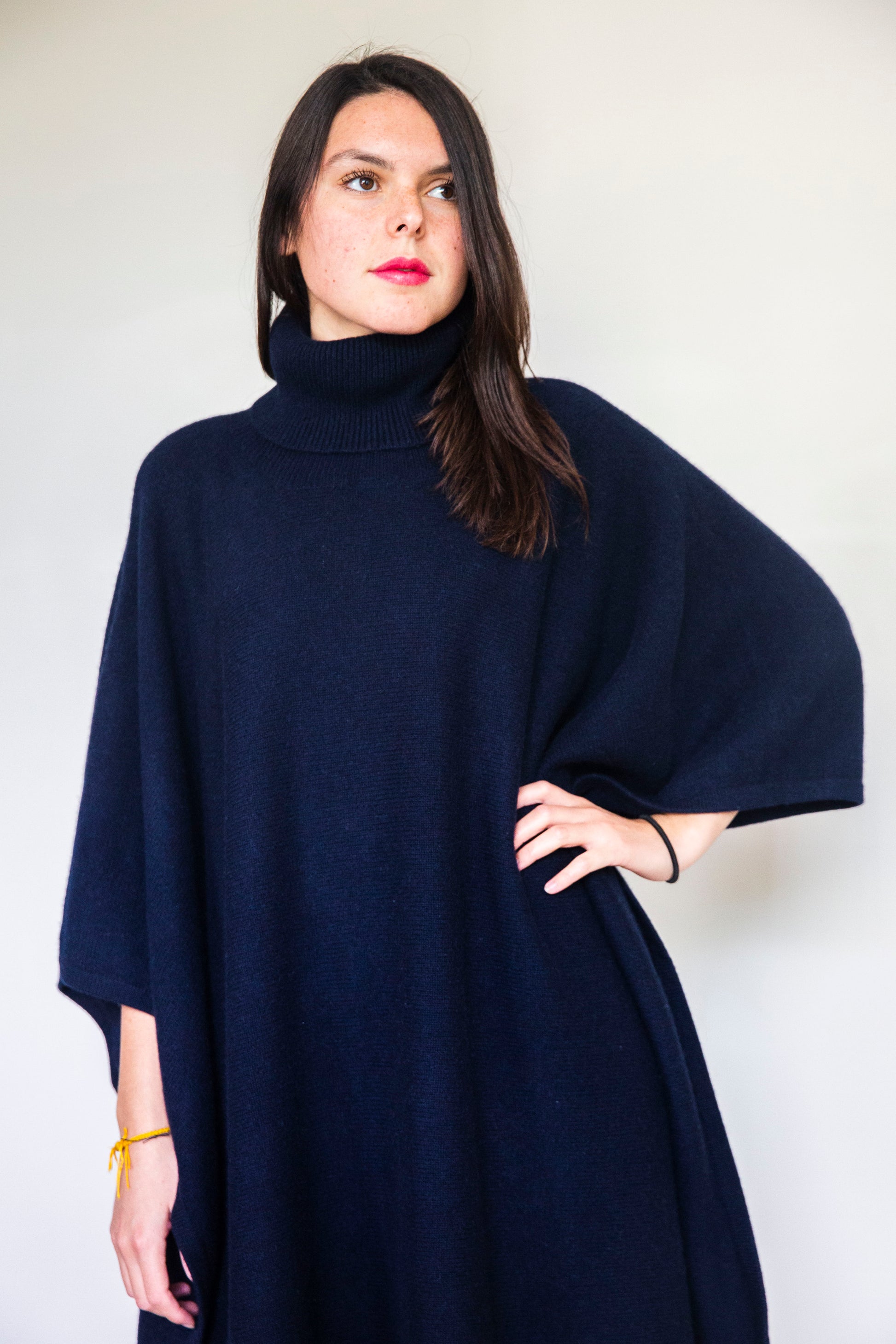 Poncho Julie Long Bleu marine